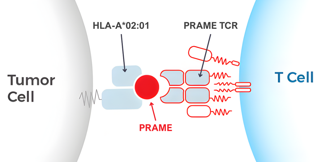 One type of immunotherapy uses cells rather than drugs to treat the cancer. The biotechnology company Immatics is developing a T cell receptor (TCR) cell therapy called anzu-cel (anzutresgene autoleucel, formerly IMA203). TCR T-cell therapy is a type of cancer immunotherapy that uses a patient’s own immune cells, called T cells, to treat cancer. T cells are obtained and extracted from a patient’s blood, modified in the lab to better recognize and attack cancer cells, grown in the lab to increase their numbers, and then infused back into the patient. Anzu-cel is a one-time cell therapy designed to help a patient’s own immune system find and destroy melanoma cells. This approach takes advantage of a cancer-specific molecule called preferentially expressed antigen in melanoma (PRAME) and an immune protein called HLA-A*02:01.